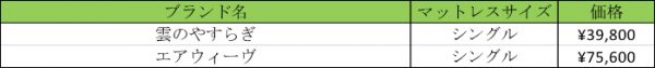 この表を見れば一目瞭然ですが、雲のやすらぎの方が圧倒的に安いです。雲のやすらぎはエアウィーブの大体半分位で売られていますね。そのような点を踏まえると、お手頃価格で寝具を購入したい人には、雲のやすらぎが合いますね。