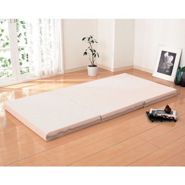 これはドルミールを含める3つ折り式の寝具の特徴なんですが、折りたたみが可能なので収納がとっても楽なんです。ドルミールウィングⅡはマットレスの厚さが9cmしかないので、3つ折りが簡単に出来ちゃいます。