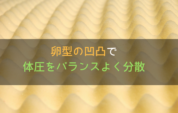 タマゴ型の凹凸と、2層構造がマットレスの通気性を向上させる事によって、寝心地も改善されます。タマゴ型の点は体への接触部分が少ないです。体に接触していない空間部分が、汗や湿度拡散して逃がしてくれるんです。